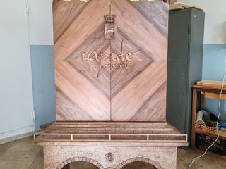 Gli studenti hanno impiegato tecniche tradizionali di falegnameria, tra cui incastri a coda di rondine, impiallacciatura in noce nazionale e scultura a tutto tondo per il logo. La chiusura dell’armadio è stata progettata appositamente, mentre la finitura finale è stata ottenuta con una patina antica applicata a mano in tre passaggi.