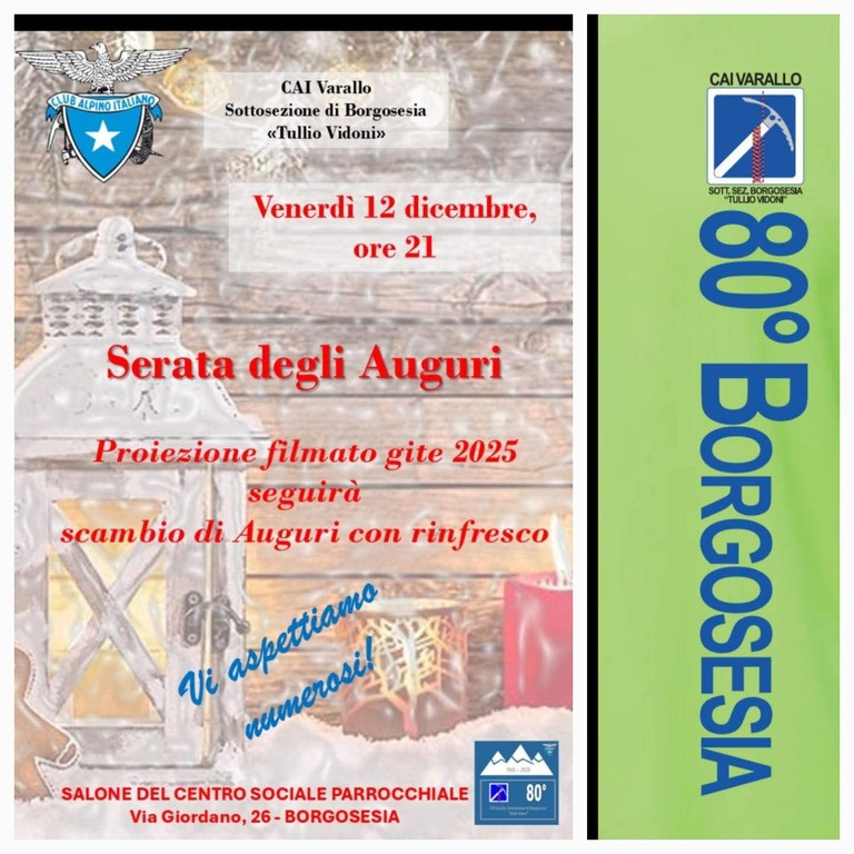 La Serata degli Auguri rappresenta da anni un appuntamento molto partecipato e il CAI Borgosesia invita soci, amici e simpatizzanti a prendere parte all’incontro, sottolineando lo spirito di comunità che contraddistingue l’associazione. “Vi aspettiamo numerosi”, recita infatti l’invito diffuso dal gruppo.