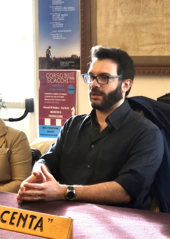 Dopo il saluto dell’Assessore alla Cultura dell’Unione Montana dei Comuni della Valsesia, Attilio Ferla, Gambarini ha sottolineato di non essere uno storico ma un divulgatore appassionato di storia: “Faccio un altro mestiere, poiché del grande affresco della storia medievale ci sono giunti solo dei coriandoli, e tutto il resto può solo essere immaginato, ipotizzato, lo scrittore di romanzi storici restituisce l’affresco, completandolo con invenzioni verosimili”. Nella costruzione del romanzo emergono le condizioni e le abitudini di vita, l’influenza dei cambiamenti climatici sulle vicende narrate, i dialoghi: le vicende nei loro particolari sono inventate, ma sempre nel modo più rispettoso possibile. Gambarini quando era liceale non amava affatto la storia, ma, dopo la lettura de “I pilastri della terra” di Ken Follet, consigliata da una professoressa illuminata, ne comprese il fascino e la portata e cominciò ad affascinarsi alla storia e alla scrittura.