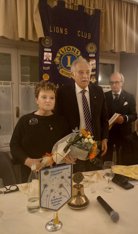 Martedì 2 dicembre il Lions Club Valsesia ha accolto la visita del Governatore Distrettuale Giovanna Sereni Macchetto, accompagnata dal Presidente della Quarta Circoscrizione, Daniele Corti, dal Presidente della Zona B Alberto Zanetta e dall’Officer Distrettuale del Club, Alberto Regis Milano. Il Governatore prima ha incontrato il Consiglio Direttivo del Club e poi i soci riuniti in conviviale. Il suo intervento ha messo in evidenza il concetto di: “Servire per migliorare la Comunità, il territorio e il contesto mondiale”, invitando a rafforzare l’Amicizia e congratulandosi per la scelta della Cascina Spazzacamini, sede dell’Anffas Valsesia per la serata della Charter. Giovanna Sereni Macchetto ha conferito la più alta onorificenza lionistica il Melvin Jones Fellow (MJF) a Francesco De Pace e ad Andrea Ballarini per l’impegno e l’operato profusi negli anni in cui sono stati Presidenti del Club. Sono stati premiati anche i soci che avevano raggiunto i cinquant’anni di iscrizione al Club: Lorenzo Bosatra e Pier Luigi Loro Piana, quarant’anni: Carlo Ronco, venticinque: Marco Renolfi, quindici: Fabrizio Zamboni, dieci: Francesco De Pace e Sergio Caneparo. La presentazione del guidoncino in cui compare il fiore del tarassaco, i cui semi volano lontano come dovrebbero fare tutti i soci, è servita al Governatore per invitare tutti i soci a: “Migrare sul territorio per seminare il We serve: essere propositivi per valorizzare il nostro territorio”. Giovanna Sereni Macchetto si è complimentata con il Club valsesiano per l’assidua presenza in tutti i settori di attività del Lions Club, invitando tutti a non dimenticare il compito della formazione, che rappresenta un arricchimento personale e di Club. Il Governatore ha poi sottolineato l’importanza dei service, ricordando gli Special Olympic Games, ma anche le collette alimentari, perché: “Servire il prossimo è la nostra missione, così come trasmettere entusiasmo e passione, quegli stessi sentimenti che mi animano da trentaquattro anni e che desidero condividere con voi tutti”. Alla Governatrice sono state offerte in dono pubblicazioni realizzate dai soci, che ha accolto con grande soddisfazione: “E’ importante sponsorizzare e valorizzare la cultura”.