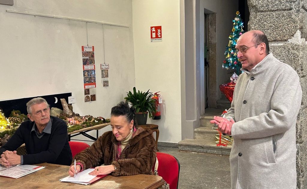 Il pomeriggio di Santa Lucia è stata inaugurata a Varallo, a Palazzo D’Adda, la mostra dei presepi, giunta alla terza edizione. Anima dell’iniziativa è il Presidente di FAV, Gaetano Scognamiglio, che, con i suoi collaboratori, da un mese disponeva i presepi nelle sale per creare un insieme armonico, in cui ciascuno avesse il suo spazio. La mostra sarà visitabile fino al 6 gennaio: tutti i giorni dalle 15.30 alle 18.30. Chiusura il 1 gennaio 2026. Il 6 gennaio è prevista anche l’apertura al mattino: dalle 10 alle 12. Espongono le loro opere ventitre persone: uomini e donne, giovani e meno giovani, perché il presepe è assolutamente trasversale, un modo di radicarsi nella realtà della nostra storia - quasi di ognuno - per tentare di recuperare il senso e l’attualità di questa rappresentazione che può assumere le forme più varie, popolata da personaggi in cammino verso la Luce. Tra i presepi esposti alcuni sono dei veri capolavori meccanici, dove scorre una vita quotidiana in miniatura, altri sono minimalisti ed evocativi, bastano gli sfridi della lavorazione degli ottoni per ricreare una Natività, altri ancora sono ambientati all’interno di oggetti di uso quotidiano: dalla cesta alla caffettiera, alla botte, alla lanterna, al catino. Piccolo o grande, ritagliato nella carta o composto utilizzando i blister delle medicine, ogni presepe ha il suo perché: svela qualcosa di chi l’ha ideato. La tradizione si coniuga con il rispetto per l’ambiente, molti dei materiali che compongono i presepi esposti sono di riciclo e acquistano una seconda, nobile esistenza. Puncetto e macramé, frutto di creatività e abilità manuale, possono anche servire per vestire i personaggi del presepe, o per arredarlo. In mostra molti sono i quadri che raffigurano Natività e Sacre Famiglie, originali, o copie di celebri opere d’arte, come il Tondo Doni di Michelangelo o la Sacra famiglia di Murillo, un pittore ha scelto di rappresentare l’attesa di quell’evento miracoloso che cambiò le sorti dell’umanità per i credenti e si ripete da più di duemila anni. Ci sono le statuine “vere”, in terracotta, plastica, resina, paste modellabili, la carta roccia, il cielo stellato, la cometa, il lumicino grande quasi come i pastori, acceso di fronte a Gesù, espressione del desiderio di luce e calore, almeno per un giorno. PRESEPI IN CITTA’ A Varallo ci sono almeno tre presepi permanenti: a Loreto, in Santa Maria delle Grazie e al Sacro Monte, ma nel periodo natalizio ne spuntano molti altri. Sotto il portico della Biblioteca l’Associazione Vecchie Contrade ha creato un elegante presepe. Nel Cortile d’Onore l’antica culla valsesiana accoglie un piccolo presepe. Chi sale le scale che portano al piano superiore incontra, in una nicchia, un presepio di francescana semplicità. Molti altri si possono scoprire nei romanzi e nelle poesie. Il presepe si trova bene tra i libri: all’interno della Mostra Libri in Libertà le Signore del Centro Libri hanno allestito un presepe tradizionale, per ricordare a grandi e piccini che è ancora possibile sognare un mondo migliore. Quel Bambino che ha scelto di nascere in una terra tormentata, ha sempre l’ultima Parola: Speranza. In un angolo di Piazza Calderini, sotto l’antico portico, si sono riaperti gli scuri di uno storico negozio per ospitare un grande presepe tridimensionale, realizzato con artigianale perizia e raffinata progettualità da Mimmo Dinaro, docente presso la Scuola Barolo, originario di Leonforte, in provincia di Enna e Giuseppe Ceccato: una complessa impalcatura lo sorregge e lo divide in piani, muschio vero fa da base per poggiare casette e statuine, mentre il cielo della Santa Notte è un arco pieno di stelle, gli occhi curiosi di chi guarda di lassù le cose del mondo.