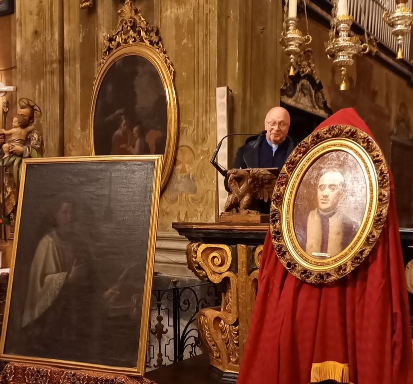 Venerdì 12 dicembre nella chiesa di San Gaudenzio è stato presentato il libro di Don Gabriele Tibaldi: Clero e Parrocchie della Valsesia. Dal Concilio di Trento ai nostri giorni, edito dal Centro Libri Punto d’Incontro di Varallo. In copertina è riprodotto un raffinato acquerello dell’Autore, laureato presso l’Accademia Albertina delle Belle Arti di Torino, che raffigura l’antica chiesa parrocchiale di Sant’Antonio Abate a Colma di Valduggia: “Un luogo ai più sconosciuto dove riposa un illustre sacerdote valsesiano, il canonico Nicolao Sottile”. Don Enzo Sala, vicario episcopale della Valsesia, si è complimentato con Don Gabriele Tibaldi che ha portato a compimento questo ponderoso studio, che diverrà strumento indispensabile per chi vorrà conoscere la storia della Valle. Don Roberto Collarini, prevosto di Varallo, ha parlato di “lavoro andato in profondità”, inserendo Don Gabriele nella fitta schiera dei “preti studiosi”, accostando quest’opera al lavoro di Padre Eugenio Manni, non terminato perché iniziato a settantasette anni, mentre Don Gabriele ne ha solo trentadue e quindi ha ancora molto tempo davanti per proseguire negli studi e coprire l’intera Diocesi. Rosangela Canuto, Presidente del Centro Libri Punto d’Incontro, editore del volume, ne ha sottolineato il valore storico, inserendolo all’interno del ricco mosaico delle pubblicazioni valsesiane: “Parlare di parrocchie e di chiese vuol dire parlare delle Comunità e della Fede delle genti della Valsesia. Ogni parrocchia viene inquadrata nel contesto storico, civile e religioso, offrendo anche numerosi spunti di carattere artistico ed architettonico. Ogni capitolo dedicato alle Parrocchie si conclude con l’elenco dei sacerdoti e dei parroci che si sono succeduti nel tempo, corredato con brevi biografie”. Don Paolo Milani, Direttore dell’Archivio Storico Diocesano di Novara e della Biblioteca Gaudenziana, primo ispiratore di questa ricerca storica e sostegno nella sua finale redazione, ha firmato la Prefazione: “Avere uno sguardo sui preti della Valsesia vuol dire avere uno sguardo più profondo sulla storia di questa terra” e ha presentato il volume: “Questo libro è stato realizzato consultando le fonti: archivi, biblioteche, chiese e cimiteri”. La Chiesa ha dato forma a questo territorio, ed i sacerdoti ebbero un ruolo importante attraverso le molteplici modalità di esercitare il ministero. Oggi il numero dei sacerdoti è diminuito rispetto ad anni fa: il picco più alto di ordinazioni si ebbe con il vescovo Balbis Bertone, tra gli anni Sessanta e Ottanta del Settecento, quando si arrivò ad ordinare cinquanta/sessanta preti all’anno, in una diocesi che era un terzo di quella attuale. A quei presbiteri così numerosi veniva spesso affidata l’istruzione dei ragazzi, perché solo una piccola parte di quel clero riusciva a diventare parroco, mentre oggi la situazione è opposta: ad ogni parroco fanno carico più parrocchie. Don Milani ha concluso il suo intervento augurandosi che Don Tibaldi prosegua nelle sue ricerche: “Questa storia locale è bella perché ci aiuta a cogliere la concretezza dell’agire umano”. Miriam Giubertoni, che si è occupata della grafica e dell’impaginazione del volume di quasi cinquecento pagine, con un apparato illustrativo costituito da foto per lo più storiche ed inedite delle chiese e dei sacerdoti, ha sottolineato come il campanile sia sempre stato il punto di riferimento per ogni Comunità, precisando che nell’apparato iconografico non compaiono i luoghi di conservazione delle opere per un motivo di sicurezza: “Meglio non dare indicazioni ai ladri”. Nel giovane sacerdote appena giunto a Varallo l’idea di scrivere questo libro fu suscitata dall’osservazione delle targhe dedicate a Don Pietro Calderini e al canonico Giulio Romerio, seguite da molte altre che davano il nome a vie e piazze. La ricerca avviata trascrivendo i Registri delle Ordinazioni della Diocesi di Novara ed integrando i dati raccolti con quelli presenti nei Necrologi diocesani, è proseguita negli archivi parrocchiali che si sono costituiti dopo il Concilio di Trento, anche se esistono per alcune parrocchie documentazioni molto più antiche e si è concentrata sul vicariato della Valsesia, che dalla bassa novarese di Mandello, Castellazzo, Proh e Briona si dirige verso l’alta valle, raggiungendo la Val Grande, la Val Sermenza e la Val Mastallone, comprendendo quarantanove parrocchie: “Ma è ricolma di numerosissime altre piccole comunità ricche di storia da raccontare”. L’obiettivo che si è posto Don Tibaldi intraprendendo gli studi per questo libro è quello di: “Rinnovare la memoria dei tanto pastori valsesiani il cui ricordo è andato affievolendosi: una ricerca per una memoria colma di gratitudine”. In Appendice l’Autore ha pubblicato le epigrafi dei preti della Valsesia, da lui disegnate in maniera schematica, a partire da alcune fotografie, e talvolta integrate dai dati d’archivio. Per conferire maggior solennità alla presentazione in chiesa, ai piedi dell’altare erano esposti quadri raffiguranti sacerdoti e presbiteri varallesi e anche un manichino che indossava gli antichi paramenti e la mozzetta. Giacomo Gagliardini, tra un intervento e l’altro, ha suonato lo storico organo proponendo musiche apprezzate dal numeroso pubblico che ha accolto molto positivamente questa nuova importante opera bibliografica realizzata dal viceparroco di Varallo, che si occupa dell’Oratorio Giovanile, esaurendo in breve tempo le copie che erano state messe a disposizione. Al termine della serata l’Autore ha ricordato che questo è un libro di consultazione, più che di lettura, precisando che il ricavato della vendita sarà interamente devoluto all’Oratorio di Varallo.