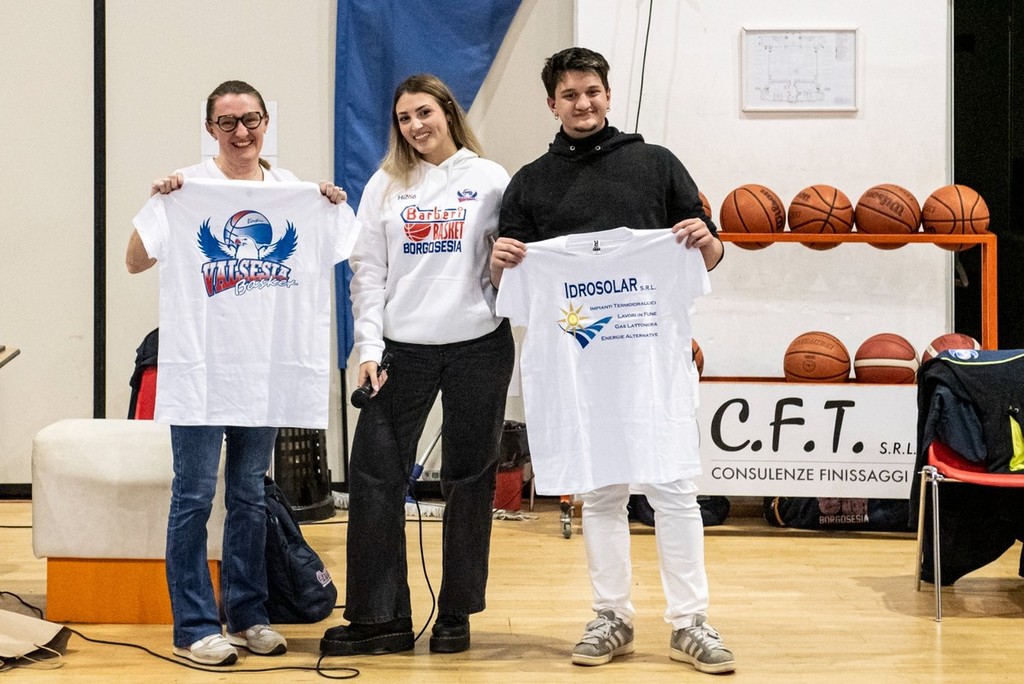Musica e divertimento durante l'intervallo con il siparietto della gara del tiro da 3 punti per gli spettatori volontari con premi offerti da IDROSOLAR srl, uno degli sponsor ufficiali di Valsesia basket di questa stagione.
