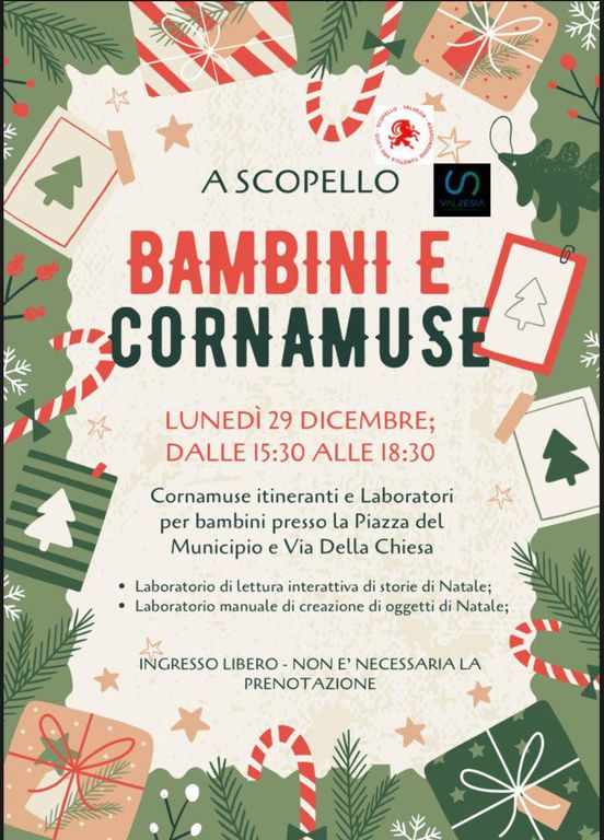 Domani, 29 dicembre dalle 15 alle 18 presso i portici in piazza Municipio zia Michi vi aspetta con lettura creativa di fiabe di Natale mentre nel dehor del ristorante Al Cantuccio Danila vi aspetta con il laboratorio di Natale. Il pomeriggio sarà allietato dagli Zampognari.