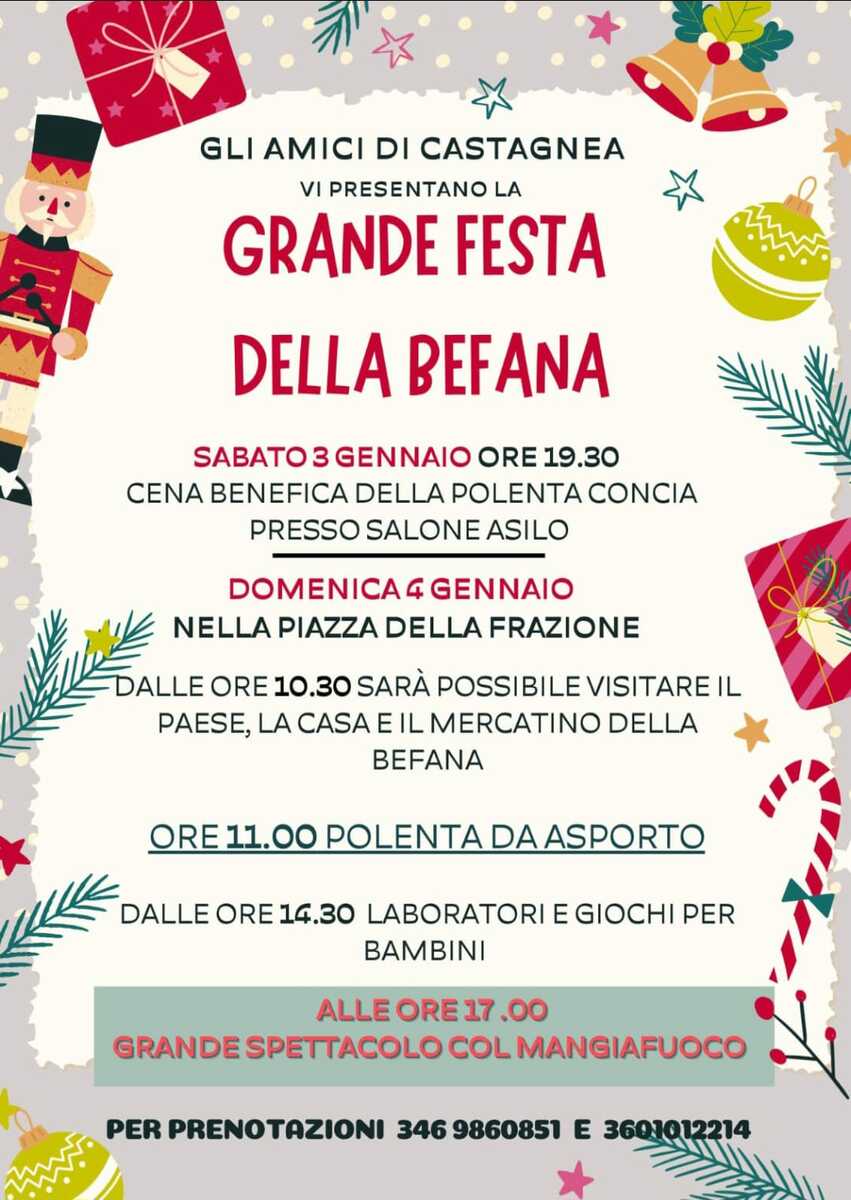 Il borgo di Castagnea, nel comune di Portula, è tornato a vestirsi dei colori e delle atmosfere del “Paese della Befana” e si prepara ad accogliere la tradizionale festa. L’evento è in programma domenica 4 gennaio, con una serie di iniziative pensate per coinvolgere grandi e piccoli.