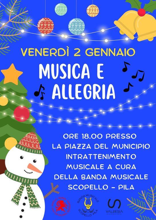 L’iniziativa si terrà alle ore 18 in piazza del Municipio e sarà curata dalla Banda Musicale Scopello-Pila, protagonista della serata con un’esibizione dal vivo.
