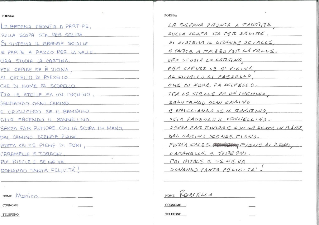 A votare sono state 223 persone. In 134 hanno completato la parte enigmistica del concorso, mentre 16 partecipanti sono riusciti a comporre correttamente la poesia finale nata dalla soluzione dei rebus: tra questi, l’estrazione ha premiato Monica e Rossella.