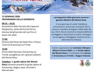La giornata è organizzata dal Comitato Olimpico Milano-Cortina 2026 con le Guide Alpine del Monte Rosa, con il contributo dei Comuni di Gressoney-La-Trinité e Alagna Valsesia.
