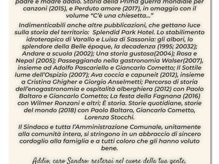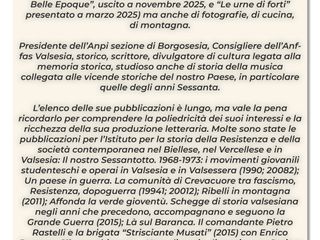 Come storico e scrittore ha contribuito alla storiografia locale con opere approfondite, diventate un tassello importante per la memoria e l’identità della Valsesia. Tra i lavori più recenti vengono citati “La Valsesia della Belle Epoque” (novembre 2025) e “Le urne di forti” (presentato a marzo 2025). I suoi interessi erano ampi: oltre alla storia, anche fotografia, cucina e montagna, con una particolare attenzione alle vicende del Novecento e agli anni Sessanta.
