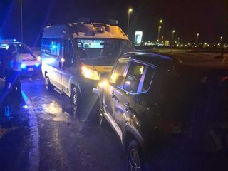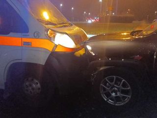 Nella notte un'auto ha colpito frontalmente l'ambulanza della Croce Verde Biellese, percorrendo in contro mano una rotonda nel vercellese. Al momento non sembra ci siano feriti, ma i danni sono evidenti.