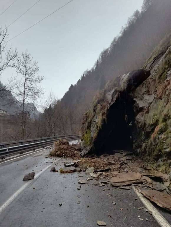 Senso unico alternato, dalla mattina di sabato 17 gennaio, sulla provinciale della Valsermenza dove, dopo l'abitato di Boccioleto, si è verificato il distacco di un'ampia porzione di roccia, precipitata sulla sede stradale.