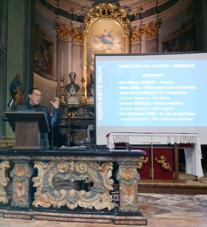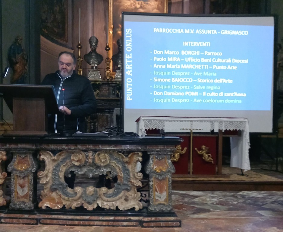 Venerdì 16 gennaio a Grignasco, in chiesa parrocchiale, un pubblico numeroso ed attento, tra il quale anche il Sindaco Roberto Beatrice, ha accolto il ritorno della tavola cinquecentesca “Genealogia della Vergine” del pittore astigiano Gandolfino da Roreto, opera di grande raffinatezza, dalla storia misteriosa, che ha sempre incuriosito i visitatori per l’affollamento dei personaggi e la presenza dei numerosi bambini. L’incontro, presentato da Paolo Cavagliano, Presidente dell’Associazione Punto Arte Onlus, è stato dedicato a Paolo e Pinuccio Sitzia che con don Gianfranco Regalli, nel 2008 fondarono l’Associazione e promossero gli studi ed il successivo restauro della preziosa tavola, realizzato tra il 2022 e il 2024 presso il Centro Conservazione Restauro “La Venaria Reale”, che ha restituito piena leggibilità ai dettagli cromatici e alla raffinatezza della pittura di Gandolfino. Dal 17 ottobre 2025 all’11 gennaio 2026 la tavola era stata esposta a Varallo, a Palazzo dei Musei in una mostra dossier La Sacra Parentela di Gandolfino da Roreto. Restauro e Confronti, promossa dalla Parrocchia di Grignasco, dalla Soprintendenza Archeologia belle arti e paesaggio per le province di Biella, Novara, Verbano-Cusio-Ossola e Vercelli, dal Centro Conservazione Restauro “La Venaria Reale” e dal museo. La mostra proponeva, per la prima volta affiancate, due preziose tavole con la Sacra Parentela o Genealogia della Vergine dipinte, nel primo Cinquecento, da Gandolfino da Roreto, tra i protagonisti del Rinascimento in Piemonte, provenienti dalla chiesa di Santa Maria Assunta di Grignasco e dalle raccolte torinesi di Palazzo Madama. Cavagliano ha ricordato come nel febbraio 2020 Punto Arte Onlus avesse dedicato il quinto dei Quaderni dedicati alla Chiesa di Maria Vergine Assunta, curato da Anna Maria Marchetti Grasso, con fotografie di Roberto Sagliaschi, proprio a questa tavola: “La sacra parentela. Gandolfino da Roreto. (XVI secolo)”. L’iscrizione apocrifa, leggibile nella parte alta del dipinto, che lo attribuisce a Gaudenzio Ferrari, venne presto messa in dubbio dagli studiosi più competenti, mentre la corretta attribuzione a Gandolfino fu fatta dal pittore Franco Fizzotti nel 1954. Il restauro è stato preceduto dallo studio preliminare della grignaschese Francesca Erbetta e da indagini di tipo scientifico su questo “quadro misterioso”, del quale non c’era traccia nella storia, fino alla donazione del Conte Viotti nel 1830. Gli interventi sono stati aperti dai saluti istituzionali del Parroco Don Marco Borghi, che ha osservato come l’opera donata dal Conte Viotti con il vincolo che non fosse mai alienata, sia pienamente inserita nel contesto storico artistico della Chiesa dell’Assunta, valorizzata dal riposizionamento nel 1907 su un pilastro a lato della balaustra dell’altare, con l’aggiunta della fastosa cornice dorata realizzata appositamente da valenti scultori grignaschesi, lasciando la coeva cornice cinquecentesca nella primitiva collocazione. Paolo Mira, responsabile dell’Ufficio Provinciale Beni Culturali, ha ricordato la passione e l’impegno dei fratelli Sitzia, esprimendo la sua grande gioia nel vedere restituita alla Comunità un’opera importante, che testimonia una storia di amore, conservazione e valorizzazione, unendo il valore artistico a quello devozionale. Anna Maria Marchetti Grasso ha saputo intrecciare il racconto storico con l’aspetto più umano e simbolico dell’opera, restituendo al pubblico una lettura viva e accessibile: “Quest’opera ci può ancora dire molte cose, se le concediamo il tempo per farlo, inoltrandoci per i sentieri interpretativi intriganti e inaspettati, illustrati nello studio pubblicato nel 2020”. Simone Baiocco, Conservatore di Palazzo Madama, trent’anni fa aveva incentrato la sua tesi di laurea, guidata dal Professor Giovanni Romano, sull’opera di Gandolfino: venne a Grignasco e fu accolto dai fratelli Sitzia. Nel suo intervento ha approfondito la forte relazione del pittore astigiano con la cultura artistica internazionale contemporanea. Il tema della Sacra Parentela, descritto nei Vangeli Apocrifi, incentrato sulla discendenza di Sant’Anna attraverso i suoi tre matrimoni, dai quali nacquero tre figlie, tutte e tre di nome Maria, da cui si generò una vasta discendenza dei “cugini” di Gesù - tradizione iconografica che dopo il Concilio di Trento non ebbe più nessuno spazio - fu di rara diffusione in Italia, ma molto popolare in area transalpina, in particolare fiamminga e renana, con l’insolita presenza del soggetto nel Piemonte Meridionale e nel Ponente Ligure, territori in cui all'inizio del XVI secolo Gandolfino da Roreto e Lorenzo Fasolo dipinsero le uniche testimonianze della Genealogia della Vergine in Italia: “In quell’Europa dei commerci gli scambi culturali avvenivano ad una velocità cui non siamo abituati a ragionare. Osservando questa storia matrilineare pensiamo anche all’importanza delle donne in quel secolo. Gandolfino fu un attento lettore delle novità culturali e si lasciò influenzare da tutte le provocazioni stilistiche delle quali venne a conoscenza, diventando collaboratore di un maestro più moderno come Pietro Grammorseo, pittore fiammingo morto a Casale giovanissimo, prima del 1531. Siate dunque orgogliosi di conservare a Grignasco un dipinto di richiamo ad una cultura così ricca di stimoli da non temere il confronto con il grande Gaudenzio Ferrari”. L’ultimo intervento è stato fatto dal Professor Don Damiano Pomi, che fu Parroco a Grignasco, e ha ricordato l’opera e il valore dei fratelli Sitzia, prematuramente scomparsi. Il suo intervento è stato incentrato sull’iconografia di questa tavola. Sant’Anna è la protagonista, ma la centralità del dipinto è riservata alla Vergine e al Bambino: “Questo quadro non è nato per questa chiesa, quindi è decontestualizzato, e non conosciamo la finalità per la quale fu realizzato, forse era leg
