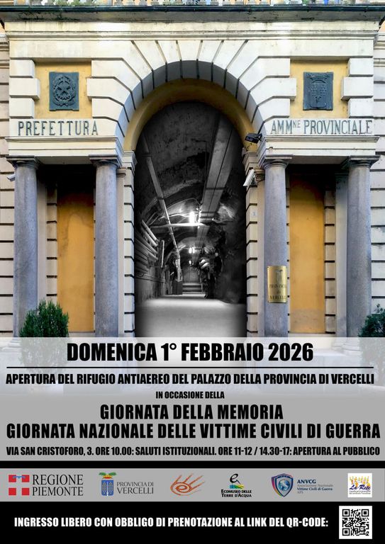 Un luogo nascosto, carico di storia e di silenzi, torna visitabile per un’occasione speciale. Domenica 1 febbraio 2026, a Vercelli, sarà possibile scendere nel Rifugio antiaereo del Palazzo della Provincia, spazio simbolo della memoria cittadina e testimonianza diretta delle vicende legate al secondo conflitto mondiale.
