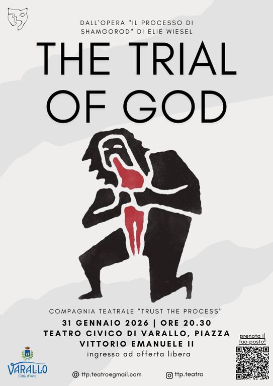 Un appuntamento teatrale intenso e carico di domande universali approda a Varallo Sesia. Al Teatro Civico, in piazza Vittorio Emanuele II, va in scena “The Trial of God”, spettacolo tratto dall’opera “Il processo di Shamgorod” di Elie Wiesel.