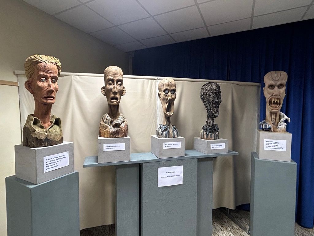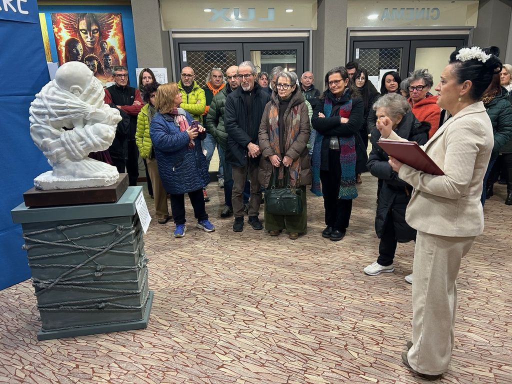 Quando l’orrore e la violenza vanno oltre il limite umano diventano irraccontabili. Prendendo spunto da una performance teatrale dell’attore Andrea Pennacchi che racconta il tormento del padre dopo il ritorno dall’esperienza atroce del concentramento a Ebensee (Austria): "...Forse questo è il problema: che chi poteva, chi aveva qualcosa da dire, non ha parlato, non voleva parlare. E così, adesso, si trovano a parlare quelli che non ne sanno niente, quelli che non dovrebbero", Ireneo Passera, bergamasco di origine, ma residente a Borgosesia, ha ideato e realizzato la mostra “Quelli che potevano parlare”, pensata per ritrovare la memoria, su massacri, stermini, genocidi, nella quale è la forma artistica che prende la parola e prova ad esprimere l'inesprimibile, l'inimmaginabile, l'orrore indicibile, sviluppa un percorso in cui l’artista prova a "parlare" con un altro linguaggio, quello delle emozioni, del sentimento, del dolore, della morte, che permette all’arte di rendere intelligibili i sentimenti più profondi dell’uomo. La trama delle parole "non dette" costituisce il "filo rosso" della mostra. Per chi non ha potuto parlare della sua esperienza estrema di violenza, abuso, annullamento, sofferenza, perché schiacciato, impedito da un immenso e inconcepibile dolore, che richiede di essere ri-vissuto e reso visibile a chi non l'ha mai provato, interviene la scultura che “parla” attraverso la forma e la materia. In mostra sono esposte dieci opere - di cui una composta da cinque sculture - realizzate in un lungo arco di anni, dal 2003 al 2026, utilizzando materiali diversi: dal marmo pario, allo statuale, al lapidale, ma anche legno: ebano, bosso, rovere, pietra pomice, ferro, ottone, gesso. L’allestimento, realizzato all’interno del cinema Lux, prevede la presentazione di una prima scultura, di grande impatto emotivo, collocata nell’atrio d’ingresso: una figura accovacciata e nuda che si autocensura: “L’angoscia di raccontarsi”, per poi proseguire al piano superiore, nella galleria, dove è stato creato un percorso obbligato, delimitato da grigliati metallici, che permette di osservare le opere da tutti i punti di vista. Dopo il “Rimpianto di Adamo”, una mano che schiaccia la mela, causa della cacciata dall’Eden, si passa a “La banalità del male” che riprende il titolo del volume della filosofa Hannah Arendt, riferito a persone comuni, senza particolari inclinazioni malvagie, che commettono atrocità in un sistema totalitario, semplicemente rinunciando alla propria capacità di pensare criticamente e di distinguere il bene dal male, obbedendo ciecamente agli ordini e diventando meri ingranaggi della macchina burocratica. Questa fu la prima opera scolpita da Ireneo Passera nel 2003. E’ facile infierire sul nemico ucciso, accanendosi senza pietà contro chi ormai non fa più paura, ma l’artista invita a: “Non infierire su Golia” arrestando la mano che impugna una pietra con la quale schiaccia la testa di Golia. Nella “Pentalogia” sono presentati i vari gradini dell’annullamento dell’essere umano, con le successive trasformazioni e la perdita dei capelli, dei denti, di ogni fattezza umana. L’ultima figura, realizzata espressamente per questa mostra, al posto dei denti e delle pupille ha delle pallottole, premessa per la successiva: “Avidità infinita”, in cui un un bruco umano defeca fili spinati che sono il suo nutrimento, mentre in “Essere o non essere” , una minuscola figurina di uomo scheletrico, realizzato in legno d’ebano, è l’emblema di tutte le povertà e imperfezioni del mondo: razzismo, discriminazione, intolleranza, segregazione, menefreghismo, qualunquismo, fragilità, viltà, superficialità, banalità. “Tra odio e amore” fu ispirata dal genocidio del Ruanda nel 1994: una donna Tutsi cerca di trattenere la creatura che porta nel grembo, lacerato da una profonda fenditura verticale. Il 14 giugno 2023, a 47 miglia dalla costa greca, il peschereccio Adriana affonda portando con sé oltre seicento persone: fu il naufragio più grave nella storia recente del Mediterraneo: Passera lo racconta in “Mare nero”, con teste disarticolate ributtate dal mare sulla spiaggia. L’ultima opera, un uomo con un mattone in bocca che gli impedisce di parlare, racchiude un interrogativo reale e metaforico rivolto a tutti i visitatori: “Rimani senza parola?”: terribile monito rivolto alla cancellazione della memoria, che potrebbe portare alla tragica ripetizione di quanto era già accaduto. Gianna Poletti, Assessore alla Cultura del Comune di Borgosesia, ha ringraziato tutti coloro che tengono viva la Memoria. Al termine della mostra Simona Carini ha presentato la Scuola di Politica, progetto ideato, organizzato e finanziato dal Collettivo Impegno Attivo Valsesia, curato dal Professor Raffaele Mantegazza dell’Università di Milano-Bicocca, percorso formativo che nel precedente anno scolastico era stato articolato in tre incontri cui avevano partecipato numerosi studenti provenienti dalle scuole superiori di Borgosesia: “L’impatto formativo è andato ben oltre il semplice successo in termini di partecipazione, smentendo lo stereotipo dell’apatia giovanile rivelandosi come una efficace integrazione al progetto formativo scolastico: i giovani si sono sentiti finalmente liberi di poter esprimere le loro opinioni”. La seconda edizione della Scuola di Politica prevede quattro incontri distribuiti lungo l’anno scolastico, sempre condotti dal Professor Mantegazza, incentrati su un tema scelto dai ragazzi stessi: la violenza e la non violenza. Il secondo incontro si svolgerà il 29 gennaio e avrà come titolo: “La violenza come mortificazione: Auschwitz e poi…”, che riflette proprio i concetti espressi in questa mostra dura e sofferta, che certo non offre una visione rassicurante di questo nostro mondo. Il Collettivo Impegno Attivo Valsesia con l’Anpi Sezione di Borgosesia e Istorbive, martedì 27 gen