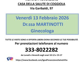 Il prossimo appuntamento segnalato è invece a Coggiola, alla Casa della Salute in via Garibaldi 97, con visite previste per venerdì 13 febbraio 2026, sempre con la dott.ssa Martinotti.