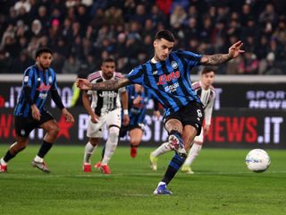 Nel primo tempo l'Atalanta non sfigura, ma le occasioni da gol più importanti le ha la Juve. Da rimessa lunga al 20', Conceicao scappa via ad Ahanor e si invola verso Carnesecchi che però è bravo a chiudere lo specchio della porta. Il portoghese è scatenato e trenta secondi più tardi, col destro a giro, stampa il pallone sulla traversa. Al 24', però, arriva l'episodio che cambia le carte in tavola. Dopo revisione al Var, infatti, Fabbri concede un rigore ai nerazzurri, a seguito di un tocco di mano di Bremer sul tentativo di cross di Ederson. Dal dischetto Scamacca è glaciale e spiazza Perin per l'1-0.