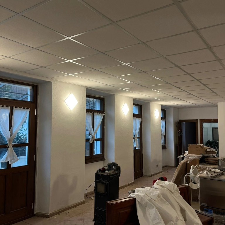 In particolare, è terminata la realizzazione del controsoffitto e risulta completato anche l’impianto elettrico, con la posa delle lampade e la successiva verifica del funzionamento. Parallelamente sono state effettuate le tinteggiature.