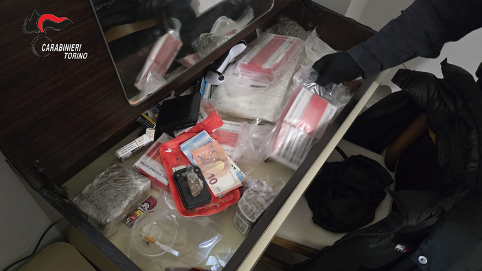 Un dispositivo di oltre cento militari della linea territoriale e dei reparti speciali del Comando Provinciale di Torino - con il supporto del Nucleo Cinofili della Polizia Locale di Strambino - ha dato esecuzione a un decreto di perquisizione personale e locale nei confronti di 25 persone ritenute responsabili, a vario titolo e in maniera continuata e in concorso, di produzione, traffico e detenzione di sostanze stupefacenti.