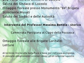 La partenza è prevista da Maggiora (NO), con successivo ritrovo a Lozzolo (VC) e una serie di momenti pubblici: saluti delle autorità, un omaggio floreale al monumento dedicato alla “84ª Brigata Strisciante Musati”, l’intervento dello storico professor Massimo Bonola, quindi la camminata verso il cippo della Pozzasca, con letture e un ulteriore omaggio floreale alle Brigate Garibaldi.