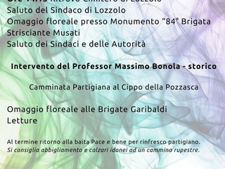 A cura di: A.N.P.I. (sezioni organizzatrici) con il coinvolgimento dei Comuni di Cureggio, Maggiora, Soriso, Serravalle Sesia e Lozzolo e del gruppo AJS – Nazionale Alpini Lozzolo