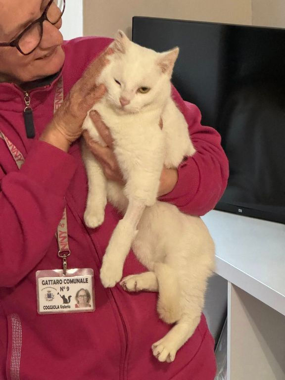 Ad Agnona, in provincia di Biella, c’è una piccola storia di salvataggio che ora ha bisogno del passo più importante: trovare una famiglia. Ieri mattina una visita sul posto, insieme alla referente di Ambulanze Veterinarie Alessandra Pilotto, ha permesso di conoscere Titina, una gattina bianca di circa un anno, sterilizzata e rimasta molto piccola di taglia. Secondo quanto riferito, potrebbe essere stata di proprietà e poi abbandonata.