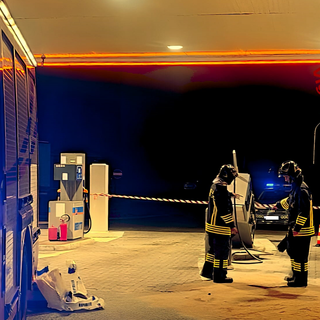 Camion urta la colonnina del distributore, fuoriuscita di gasolio in serata sull'A4