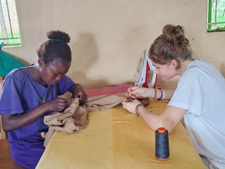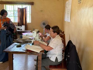 Qui l’intervento è soprattutto di trasferimento di competenze: le ragazze stanno insegnando a giovani del posto a usare la macchina da cucire e a piazzare le stoffe con cartamodelli portati dall’Italia, per realizzare capi base come pantaloni, gonne e top. Il lavoro si svolge nel laboratorio di sartoria della missione di Our Lady, attrezzato con macchine a pedali ed elettriche. Il laboratorio è già operativo grazie ad alcune donne del villaggio di Kambi Ya Juu, che confezionano le uniformi fornite gratuitamente alle scuole dell’associazione (Our Lady e Akadeli).