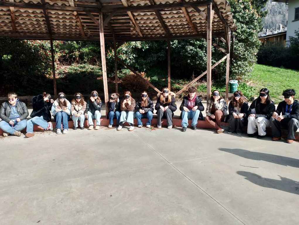 In ciascun punto i ragazzi erano chiamati a esplorare materiali e sensazioni senza utilizzare la vista, affidandosi quindi agli altri sensi. Ad accompagnare i gruppi di studentesse e studenti sono state persone non vedenti, tra cui anche un’ex allieva del Liceo: un elemento che ha reso l’esperienza ancora più concreta e vicina.