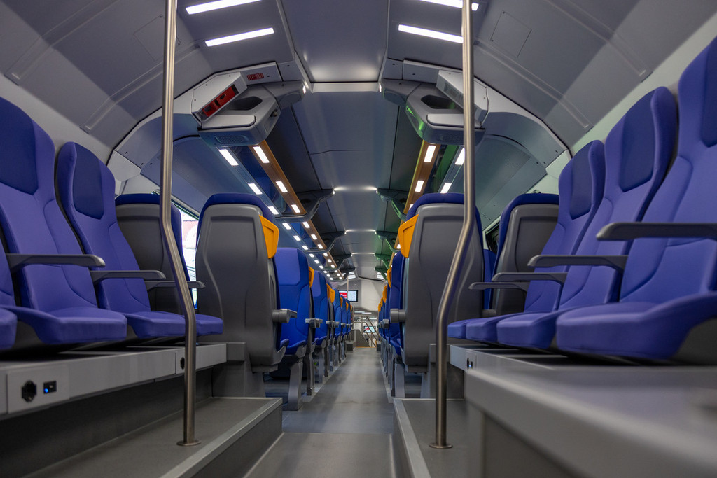 IL TRENO DOPPIO PIANO ELETTRICO - Elettrico, doppio piano, dotato di 8 motori di trazione, può raggiungere una velocità di 160 km/h. Ospita oltre 1.100 persone. Più spazio per le bici, fino a 12 postazioni con punti di ricarica per e-bike o monopattini elettrici. Le poltrone sono provviste di prese di corrente e usb, la climatizzazione interna si autoregola. Le vetture sono dotate di area per il passeggino e, nell’ampia toilette, di fasciatoio e porte-enfant per la comodità dei più piccoli.