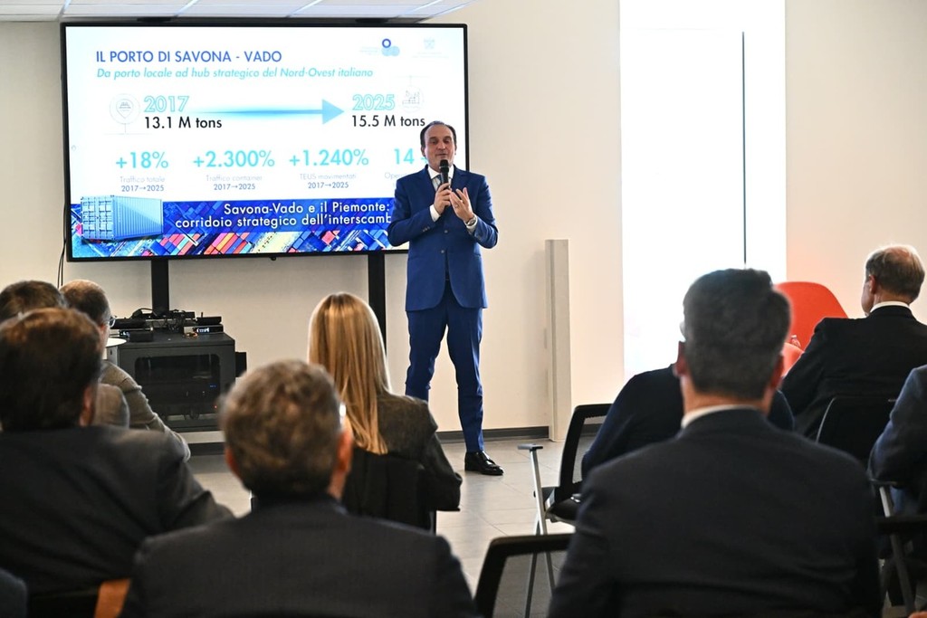 Al porto di Vado il confronto ha coinvolto, insieme all'assessore ligure Marco Scajola, anche terminalisti, spedizionieri, fornitori dei servizi tecnici e enti locali per parlare del rafforzamento delle connessioni tra l’hub portuale di Savona–Vado Ligure (riferimento per le filiere agroalimentari, rinfusiere e containerizzate del nord Italia e del sud Europa) e il sistema produttivo piemontese, storico retroporto strategico, dotato di aree idonee allo sviluppo delle attività di stoccaggio e distribuzione. Lo scalo, primo d’Italia per crescita percentuale, si conferma componente trainante della piattaforma ligure, come evidenziato dai dati di traffico: significativo incremento del comparto container (+58,4%, circa 590 mila TEU movimentati) e delle rinfuse (+1,6%), in un contesto internazionale caratterizzato da persistenti incertezze geopolitiche.