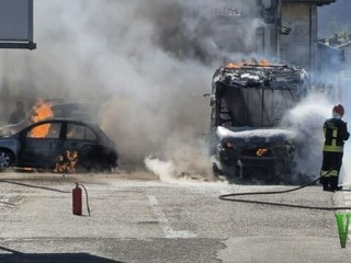 Stando alle prime informazioni raccolte, sarebbero tre i veicoli coinvolti dalle fiamme. Presenti i Vigili del Fuoco, la Polizia locale, i Carabinieri e un’ambulanza. La strada è stata chiusa al traffico per consentire l’intervento dei soccorritori.