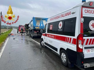 Incidente mortale questa mattina, intorno alle 9.15, sulla strada provinciale 3 tra Carisio e Santhià. Coinvolti nello scontro due mezzi pesanti: una persona ha perso la vita mentre un uomo di 54 anni è rimasto ferito ed è stato trasportato in codice giallo all’ospedale di Vercelli. Sul posto sono intervenuti un'ambulanza e l'elisoccorso.