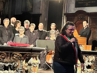Dopo l’Adoramus Te di Claudio Monteverdi, si sono susseguite le testimonianze di persone che hanno conosciuto da vicino Paolo Sitzia. Il Dottor Mario Remogna ha sottolineato il legame di fiducia, stima e interesse che lo univa a lui, ricordando anche la profonda affinità tra Paolo e il fratello Pinuccio nell’attenzione alle memorie storico-artistiche del territorio. È stato inoltre ricordato come Paolo abbia dedicato cinquant’anni di studi al pittore Pier Francesco Gianoli, lavoro che sarà ora proseguito da un giovane studioso grignaschese.