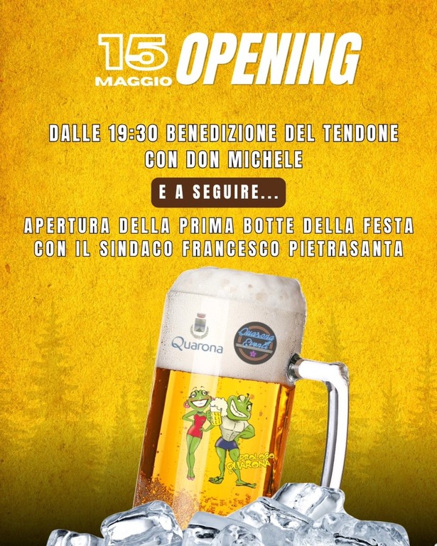 Il via ufficiale è fissato per venerdì 15 maggio. Dalle 19.30 è prevista la benedizione del tendone con don Michele. A seguire si terrà l’apertura della prima botte della festa con il sindaco Francesco Pietrasanta.