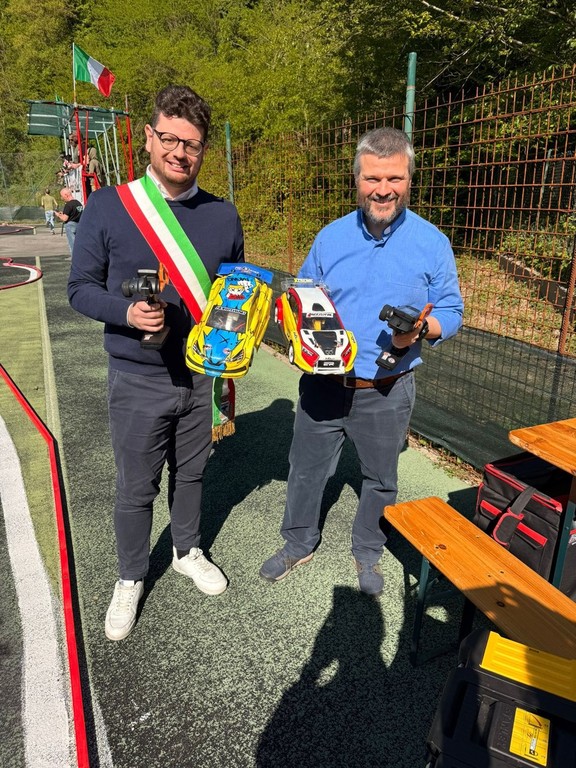 Durante l’inaugurazione, il sindaco Luca Chiara e don Lorenzo hanno avuto l’onore di percorrere i primi due giri sul nuovo tracciato. Un momento simbolico e anche scherzoso, visto che, come raccontato dallo stesso sindaco, la macchinina è stata “messa a dura prova” e per entrambi servirà ancora un po’ di allenamento.
