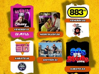 Il calendario della musica dal vivo prevede diversi appuntamenti. Dopo l’apertura di venerdì 15 maggio, sabato 16 maggio sarà la volta di Party 90 con DJ Pima.