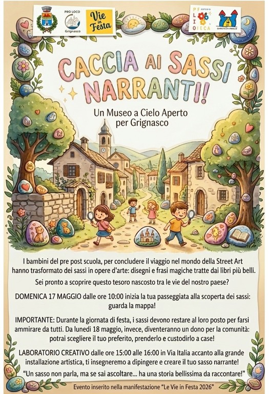 La festa proseguirà domenica 17 maggio, dalle 10, con la Caccia ai sassi narranti, un percorso pensato come un piccolo museo a cielo aperto per Grignasco.