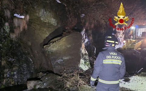 Balmuccia, massi sulla Sp 10 della Val Sermenza: intervento dei Vigili del Fuoco nella tarda serata del 16 marzo