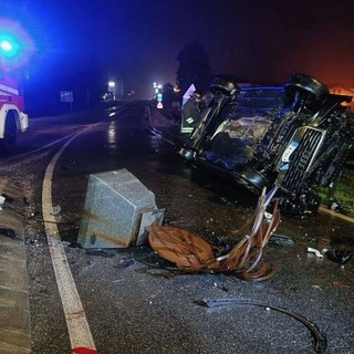 Dal nord ovest: auto si ribalta dopo aver centrato una statua sulla rotonda