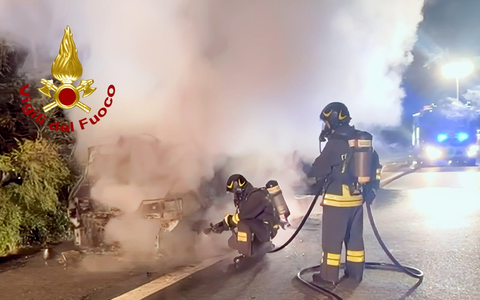 Dal Nord Ovest - Incendio di un furgone sull'A5